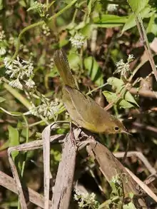 Vocalizations are very similar to those of common yellowthroat and are not readily distinguishable to the human ear. Altamira and common yellowthroats, however, do not respond to tapes of one another's songs.[2]
