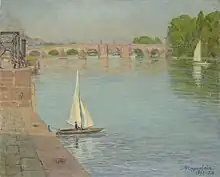 "I loved more than anything else to promenade on the great bridge over the Maine. Its length, its firmness, and its fine appearance rendered it a notable structure, and it was, besides, almost the only memorial left from ancient times of the precautions due from the civil government to its citizens. The beautiful stream above and below bridge, attracted my eye, and when the gilt weathercock on the bridge-cross glittered in the sunshine, I always had a pleasant feeling."
