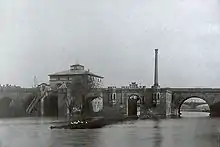 In the early 17th century, the last wooden pillar of the bridge, located north of the bridge mill, was replaced by a stone equivalent. However, the ceiling of the bridge still consisted of wooden bars which could be removed quickly to prevent passing of the bridge.