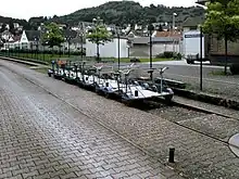 Students of the Kaiserslautern University of Technology proposed the establishment of a draisine operation on the Altenglan–Staudernhein section of the line to prevent its final closure and the dismantling of its track. The supporters of this project included a councillor of Kusel district, Winfried Hirschberg. After an examination of the draisine lines in Templin in Brandenburg—at that time the only one in Germany—and near Magnières in Lorraine, detailed planning began, which was implemented in 2000.[25] Since 2000 the Altenglan station of the southern starting point of the trolley route and, along with Lauterecken-Grumbach and Staudernheim, one of three stations offering trolley rentals.