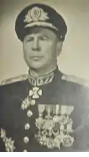 After the war, Kruel served as a military attaché in London until his promotion to colonel in 1947.[2] The position of attaché was a prestigious one and offered a more cosmopolitan life, isolated from barracks and bureaucracy. In diplomacy, Kruel was also Brazil's military advisor at the United Nations in 1960.[17] In 1958 he was awarded the Grand Cross of the Military Order of Aviz of Portugal.[18]