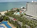 The Ambassador City Jomtien is a large hotel and convention centre at Jomtien Bay, near Pattaya, Thailand, with "over 4,000 rooms" . Located about 8 km south of Pattaya, it occupies a 40-acre (160,000 m2) campus overlooking the beach and nearby mountains. It consists of 5 buildings that each contain 150 to 2,000 suites. There are eight restaurants, several bars and nightclubs, a convention center, sport centre and what is claimed to be Asia's largest swimming pool.