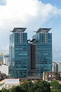 On 20 January 1955, External Affairs Minister Casey announced that a separate Australian Legation to Cambodia would shortly be established in Phnom Penh, with the minister resident in Saigon continuing to be accredited to Cambodia.[8] The Cambodia office opened on 29 October 1955 with Harold David Anderson as charge d'affaires, and the Saigon-resident ministers would continue to represent Cambodia until 1957, when a separate minister was appointed.[1] A separate legation office for Laos was established in Vientiane on 12 October 1959, and on 30 December 1960 Arthur Morris was appointed as the first separate minister to Laos.[1][9] On 21 August 1959, with the appointment of the first ambassador to Vietnam, Bill Forsyth, the Saigon legation was raised to the status of embassy.[10] The Australian Embassy to the Republic of Vietnam, based from 1962 to 1975 in the Caravelle Hotel, was evacuated in the days before the Fall of Saigon.[11][12]