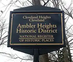 Ambler Heights Historic District is a historic district in Cleveland Heights, Ohio, United States. Listed on the National Register of Historic Places in 2002, it includes 112 contributing buildings in an area of 73 acres (300,000 m2), which was created between 1903 and 1927.[2]