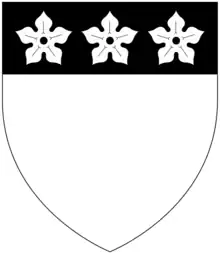 Arms of Bellot: Argent, on a chief sable three cinquefoils of the field[1]