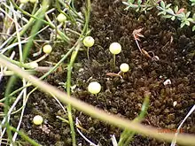 Ambuchanania leucobryoides is the only species in the monotypic genus Ambuchanania. It is a Sphagnum-like moss endemic to Tasmania. Originally described as a species of Sphagnum, it is now a separate genus named after the original collector Alex M. Buchanan, (b.1944) an Australian botanist from the Tasmanian Herbarium in Hobart, (it was first collected in 1987).[4] A. leucobryoides differs from the family Sphagnaceae in having elongate antheridia. It is entirely restricted to south-west Tasmania's Wilderness World Heritage Area where it occurs on white Precambrian quartzitic sand deposited by alluvial flows, and on margins of buttongrass (Gymnoschoenus sphaerocephalus) sedge land. Species most commonly found in association with A. leucobryoides include: Leptocarpus tenax, Chordifex hookeri, and Actinotus suffocatus. Currently, A. leucobryoides is listed as rare under the Tasmanian Threatened Species Protection Act 1995.