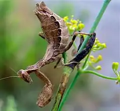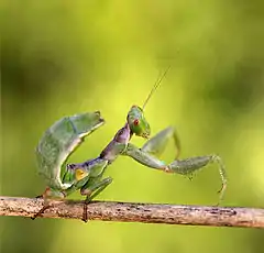 Similarly to the common Mantis religiosa the females may cannibalise the males whilst mating.[4]