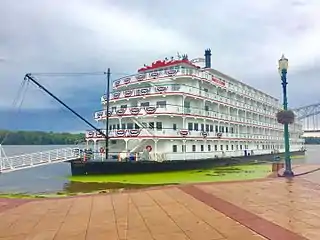 American Splendor, formerly America, is an overnight riverboat built by Chesapeake Shipbuilding in Salisbury, Maryland for American Cruise Lines (ACL) for overnight river cruising on the Mississippi, Ohio, Tennessee, and Cumberland rivers in the United States. American Slpendor replaced paddlewheeler American Pride on the Mississippi River in 2016 when that ship was repositioned to the Columbia River.[1] According to American Cruise lines, American Splendor will have "features never seen before on a riverboat".[2] American Splendor is slightly larger than previous ACL riverboats with a 185-passenger capacity. The ship's hull was launched on August 7, 2015, and moved to a basin where construction of the upper decks and outfitting will take place.[3]
