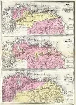 ![]() Top to bottom: First, Second and Third Republic of Venezuela Spanish territory Revolutionary territory | |||||||||||