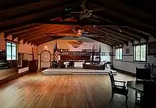 As a result, Carmel Post No. 512 of The American Legion received its temporary charter on November 5, 1934,[4][5] and a permanent charter in 1935.[6] James J. Regan served as its first commander.[2] Post member George F. Whitcomb wrote a poem to the post's chaplain, entitled: A Legionnaire Speaks, which talks about "our sacred right to live as free men do."[7] During World War II the building operated as a USO club.[4] In November 1941 alone, it served more than 1,350 soldiers from Fort Ord.[2] In 1943, the USO Club added another extension to create a U-shaped building and added classes for servicemen and women in arts and crafts.[2]
