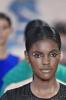 Estêvão was scouted in Angola by her mother agency Da Banda Model Management where she won Elite Model Look Angola 2013 . She became the first Black female finalist to reach the Top 3 position at the Elite Model Look competition 2013 edition.[5] Afterwards, she signed with Elite Model Management and debuted in the F/W 2015 fashion week season notably walking for Prada, Fendi, Balenciaga, Alexander Wang, and Moschino.[6] Later that year she walked for Prabal Gurung, Gucci, Kenzo, Burberry Prorsum, Givenchy, Alberta Ferretti, Lanvin, and Bottega Veneta among others.[7][8][9]
