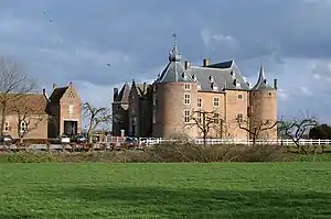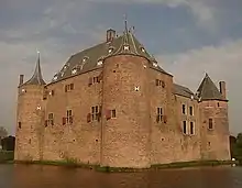 Ammersoyen Castle (Dutch: Kasteel Ammersoyen) is located in Ammerzoden in the Bommelerwaard region in the province of Gelderland, the Netherlands. When the original construction of the castle occurred is unclear; some sources claim it was as early as the 12th century. However, the consensus among historians is that the Van Herlaer family completed the castle in the 1350s. At the time of its construction, the castle was built along a branch of the river Maas. Just a few years after the construction of the castle was completed, the river was rerouted leaving the castle to be surrounded by a moat.