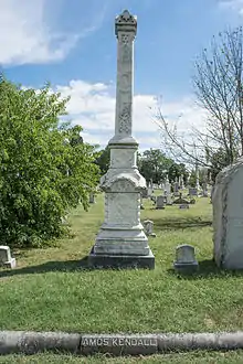 Amos Kendall died at dawn at his home in the Stickney Mansion on Friday, November 12, 1869. He was interred in Glenwood Cemetery in Washington, D.C.[83] He was the last surviving cabinet member of Jackson's and Van Buren's presidencies.