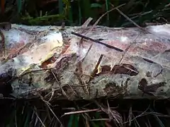 - ↑ Binder M, Larsson K-H, Matheny PB, Hibbett DS (2010). "Amylocorticiales ord. nov. and Jaapiales ord. nov.: Early diverging clades of Agaricomycetidae dominated by corticioid forms". Mycologia. 102 (4): 865–80. doi:10.3852/09-288. PMID 20648753.