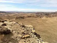 Anaconda was a small mining community in Cibola County, New Mexico. The town came into existence in the early 1950s when the Anaconda Copper Company of Butte, Montana opened up a uranium ore processing plant 10 miles (16 km) northwest of Grants, along Route 66, to process ore from the Jackpile Mine (or Jackpile-Paguate Mine),[1][2] then the world's largest open-pit uranium mine.[3] Anaconda was the site of somewhere around 100 homes for the supervisors and management of the company. The Mill was also located on the same property. Contrary to reports, none of the homes were built using "radioactive" material from the plant. Referred to by the residents as "Camp", a carryover from the original tents used as temporary housing during the initial establishment of the operations. The housing was built in three phases. The first group of about 35 houses was constructed of cinderblock walls and had exposed beam ceilings. A building with four efficiency type apartments was included and used to house unmarried employees and was known as the Bachelors Quarters, or simply "The BQ". The two subsequent groups of approximately the same number were wood frame construction with stucco exteriors. The groups came to be called by the order of their building. Old Camp, Middle Camp and New Camp The Mill closed in early 1980s and the houses were sold and removed and the land reclaimed during the next 20 years. Testimony given before the New Mexico Legislature's Economic and Rural Development Committee in 2008 claimed that the mill had polluted local aquifers.[4] Presently there is little to show that the area was once a community.