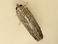 The wingspan is 14–17 mm (0.55–0.67 in). The forewings are rather dark fuscous, irregularly irrorated (speckled) with white and with several small undefined dark spots on the costa. There are numerous scattered undefined dots and dashes of black scales irrorated with whitish. The hindwings are fuscous, thinly scaled and semitransparent towards base, darker posteriorly.[3]