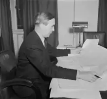 Andreas Frihagen (born 28th January 1892 in Vanylven, Møre og Romsdal – died on 5th April 1979 in Oslo)[1] was a prominent Norwegian bank manager and politician affiliated with the Norwegian Labour Party. He served as the manager of "Den norske Industribank" before transitioning to a governmental role. Initially, he held the position of head of the Ministry of Trade. Later, in 1942, he became the head of the Ministry of Supply and Reconstruction as part of Norway's post-war reconstruction efforts.