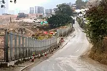 To the east of the road is Tai Sheung Tok hill. From 1964,[2] the hilltop was developed as a large quarry, Anderson Road Quarry (安達臣道石礦場), highly visible from much of Kowloon and Hong Kong, which supplied construction aggregate to Hong Kong until July 2017, operated by the K.Wah Group,[3][4] when it was one of only three quarries still operating in Hong Kong, along with those in Shek O and Lam Tei. The quarry site is on the ridge surrounding Kowloon, visible from much of urban Hong Kong, but was ultimately deemed to damage the beauty and the fungshui of Victoria Harbour.
