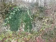 The fortification was surrounded by a stone wall, around which there was a 1.5 metres (4 ft 11 in) walkway, then a large U-shape ditch up to 11.3 metres (37 ft) wide.[9] It was thought by Debord that there may have been a second moat, but this has been shown to be incorrect.[3] The surrounding woods contained oak, beech and maple, which were used indiscriminately for fuel. The woods had clearings for pasture or crops.[6]