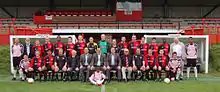 The beginning of the 2008–09 season saw the Lions marking their 125th anniversary with a pre-season friendly against local rivals Salisbury City.[25] Prior to the game, it had been announced that the club would also be wearing a new kit design to mark this occasion for one season only—a plain red shirt (a departure from the traditional red and black stripes) was worn for the first time during this game, which Andover won 3–2. The season itself saw Andover have their best run in the FA Trophy to date, eventually losing 0–3 at home to Newport County in the third qualifying round.[26][27]