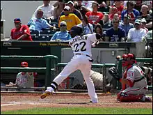 Before the 2006 season Baseball America named McCutchen the #50 prospect in the minor leagues.[8] McCutchen played the majority of the season for the Class A Hickory Crawdads, for whom he started the South Atlantic League (SAL) All-Star team in his first full season as a professional player and was a postseason SAL All Star.[11][8][12] He also played for the Class AA Altoona Curve, and batted a combined .294/.359/.450 with 17 home runs and 23 stolen bases in 531 at bats.[13] At the end of that year, the Pirates named him the organization's Minor League Player of the Year.[14]