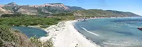 Frances Molera stipulated that the park should be named Andrew Molera State Park in honor of her brother.[19] She also added provisions to the sale requiring that the land remain relatively undeveloped. She died in 1968. When the California state park administration began to propose considerable development for the park, the Nature Conservancy threatened to revoke the sale arrangement, and the state backed down.[20] The remaining 2,654.7 acres (1,074.3 ha) of Frances Molera's half of the original Rancho El Sur east of Highway 1 was purchased by the state soon after her death. The northern 7,100 acres (2,873 ha) of John. B.R. Cooper's share of the Rancho El Sur comprising 13 parcels is the modern-day El Sur Ranch.[21]
