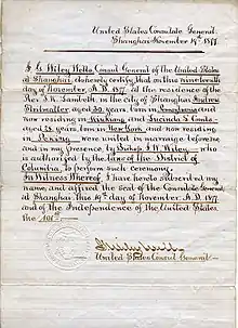 In 1872, he met with Bishop I.W Wiley whom he asked for approval to serve as a missionary in China. The mission appointed him to Jiujiang, China thereafter. He embarked on his journey on June 5, 1873[6] from San Francisco accompanied by other missionaries. On the journey he met Lucinda Combs, who had been appointed by the Women's Foreign Missionary Society (Philadelphia) to Peking, China and who would later become his wife. Once he arrived, he quickly began learning the language, and began his evangelical duties. He preached regularly and distributed scriptures in the surrounding areas. Towards the end of his commission, he focused heavily on translating and preparing books for his mission.