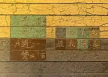 The Angel Island Chinese Monument (37°52′13″N 122°25′32″W / 37.87023°N 122.42563°W / 37.87023; -122.42563) is a monument dedicated to Chinese immigrants who entered the United States through the immigration station.[14] It was completed in 1978 and placed in 1979.[15] The monument's inscription says "Leaving their homes and villages, they crossed the ocean only to endure confinement in these barracks. Conquering frontiers and barriers, they pioneered a new life by the Golden Gate."[14] The inscription is reminiscent of Chinese poems that were carved into the barracks walls of the immigration station by detained Chinese immigrants.[16]