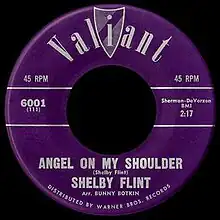 - ↑ Shelby Flint - Angel On My Shoulder (45 rpm single) Retrieved September 23, 2023