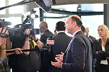 Alfano was Minister of the Interior from 28 April 2013 to 12 December 2016, serving in the governments of Matteo Renzi and Enrico Letta; from 2013 to 2014 he held the office of Deputy Prime Minister of Italy, as part of the Letta Cabinet, and previously served as Minister of Justice from 2008 to 2011 as part of the Berlusconi IV Cabinet. He was the first and only secretary of the centre-right party The People of Freedom (PdL) from 2011 to 2013. In November 2013 he became Leader of the New Centre-Right party which is a split from the PdL,[1] until March 2017 when NCD was dissolved and Popular Alternative was founded.[2]