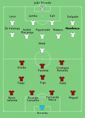 Flávio got the opening goal of the game and Angola's only goal of the tournament when he headed home after a cross from the right in the 60th minute.