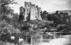 Once the entire force had converged near Wheeling, McDonald and Captain William Crawford directed the construction of Fort Fincastle in July 1774.[20][21] Following the erection of the stockade, McDonald ordered each of his soldiers to pack seven days' worth of provisions.[19] On July 26, 1774, his forces crossed the Ohio River at the mouth of Fish Creek about 24 miles (39 km) south of Fort Fincastle.[19][20] McDonald's forces continued down the Ohio River in boats and canoes until they reached the mouth of Captina Creek, from which they marched toward the Shawnee villages of Wakatomika (also known as Wapatomica) near the mouth of Wakatomika Creek (modern-day Dresden, Ohio) on the Muskingum River.[12][18][19] McDonald's forces had not encountered any enemy Native American forces on their expedition until about 6 miles (9.7 km) from Wakatomika, where they were ambushed by a force of approximately 30 to 50 Shawnee arranged in columns at the head of a swampy crossing.[15][18][19] The ambush resulted in the deaths of two soldiers and the wounding of up to eight or nine more.[18][19]