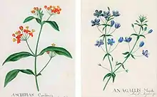 Anne Lee drawings of Asclepias curassavica, Anagallis monelli, 1771