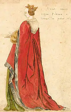 In 1400, Anna visited the tomb of Dorothy of Montau in Marienwerder (modern Kwidzyn), and prayed in the churches of Saint Anne in Brandenburg and of Saint Barbara in Oldenburg.[1] She was accompanied by her brother-in-law Sigismund Kęstutaitis and an escort of 400 men.[1] Anna was greeted with expensive gifts and lavish receptions.[8] Anna continued to maintain good relationship with the Teutonic Knights, who sent her expensive gifts, including a clavichord and portative organ in 1408 and rare wine in 1416.[9] After her death, all churches in Prussia were ordered to hold requiem masses.[3] Various chronicles and documents recorded much less positive interaction between Anna and Poland.[9]