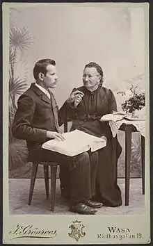 Swedish Baptist missionary and colonel Oscar Broady held temperance talks in Vaasa in the late 1870s.[25] The movement first spread to Anna and Netta's friends, the Hellmans, in Vaasa, and was soon taken up by the Heikel sisters. They formed the country's first teetotalism association in Jakobstad in 1877, attended by exclusively Baptists, including a number of children; the association caused so much controversy in the town that some students were expelled and the two were forced to leave their teaching jobs.[4][26]