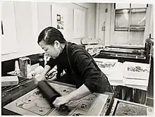 ![]() Wong at Pratt Graphics Center studio (1971) | |