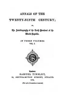 Annals of the Twenty-Ninth Century: or, The Autobiography of the Tenth President of the World-Republic is a science fiction novel written by Andrew Blair, and published anonymously in 1874.[1]