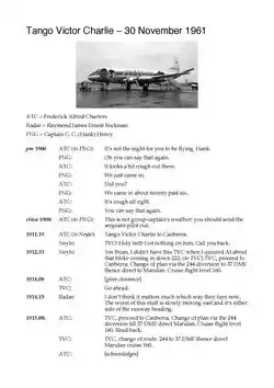 Record of talk in Sydney Airport control tower on the night of the accident.[5]