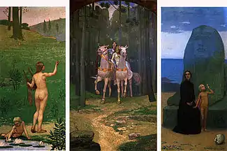 Two years later, he was able to go to Paris after receiving a scholarship sponsored by António Borges, Marquês da Praia e Monforte. He attended the Académie Julien, studying with Jean-Paul Laurens and Jean-Joseph Benjamin-Constant.[1] In 1900, he won a Silver Medal at the Exposition Universelle for his triptych "Life".[2] He returned to Porto in 1911 and became a teacher at the Escola. Unable to make a living from his art, he took a two-year hiatus to exhibit in Brazil from 1914 to 1916.[2] After his return, he was appointed Chair of the drawing department in 1918.