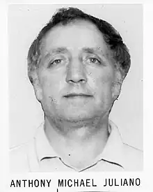 Anthony Michael Juliano (September 24, 1922 – August 20, 2001) was an American thief who was responsible for at least 27 bank robberies in Boston and New York between 1973 and 1975. He was eventually issued a federal warrant in Brooklyn on November 11, 1975, which charged him with conspiracy to commit bank robbery. After a second warrant was issued on November 28, regarding the violation of terms of release from a previous federal prison sentence, he came under the attention of federal authorities and officially listed on the FBI's Ten Most Wanted list on March 15, 1976.[1][2]