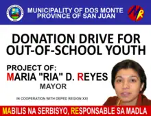 Example of a tarpaulin signage of a municipal government's project prominently depicting the name and likeness of its mayor (fictional for the purpose of illustration only). This instance may be considered as epal.