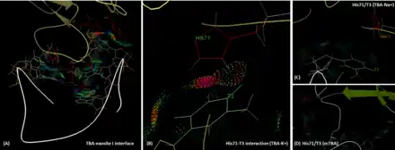 TBA is bound to the exosite I of thrombin majorly via its two TT loops (T3, T4 and T12, T13) through polar and hydrophobic interactions. The residues His71, Arg75, Tyr76, Arg77, Asn78, Ile79, Tyr117 in the exosite I epitope are involved in the interaction with TBA.[7] Exosite 1, being a positively charged motif, engages in these interactions with the negatively charged backbone of HD1.[11] Importantly, T3 interacts with His71, which plays a critical role for fibrinogen recognition,[12] both through hydrogen bonding and hydrophobic interaction. However, in the presence of sodium ion, the hydrogen bonding between T3 and His71 is lost, and the intermolecular distance is longer than that in the potassium case. This reduces the affinity and functionality of TBA. Similar situation can be found in the case of mTBA. There are no interactions between mTBA and His71, which results in the reduction of anticoagulant activity.[13] The results of In silico calculations with molecular mechanics Poisson-Boltzmann surface area (MM-PBSA) method, suggest that the calculated binding energy (ΔG) of TBA to thrombin exosite I is slightly stronger is the presence of K+ (-66.73 kcal.mol-1) than in the case of Na+ (-60.29kcal.mol-1), however both states are likely to coexist.[14]