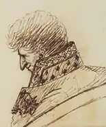 In 1814 Ferrand was made minister of state and postmaster-general. Ferrand countersigned the act of sequestration of Napoleon's property, and introduced a bill for the restoration of the property of the emigrants establishing a distinction, since become famous, between royalist of la ligne droite and those of la ligne courbe. At the second Bourbon restoration Ferrand was again for a short time postmaster general. He was also made a peer of France, member of the privy council, grand-officer and secretary of the orders of Saint Michel and the Saint Esprit, and in 1816 member of the Académie française. He continued his active support of ultra-royalist views until his death, which took place in Paris on 17 January 1825.[1]