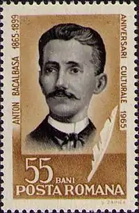 Anton Costache Bacalbașa (Romanian pronunciation: [anˈton kosˈtake bakalˈbaʃa], commonly known as Toni or Tony Bacalbașa, pen names Rigolo, Wunderkind,[1] Inot,[2] Jus., Wus., Zig. etc.;[3] 21 February 1865 – 1 October 1899) was a Romanian political journalist, humorist and politician, chiefly remembered for his antimilitaristic series Moș Teacă. Together with his brothers Ioan and Constantin, he entered public life as a republican and socialist militant. For a while, his career was intertwined with that of Marxist doyen Constantin Dobrogeanu-Gherea, who inspired in him the idea of a socialist art addressed to the masses. He was himself a popularizer of Marxist ideas, and one of the first Marxist intellectuals in Romanian political history.