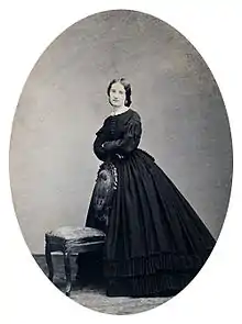 In early 1863, Ford was betrayed by a Union counterspy named Frankie Abel, whom she had befriended and shown the document bearing Stuart's signature. Ford was subsequently arrested on March 13 and incarcerated in Washington, D.C., at the Old Capitol Prison. She was accused of playing a prominent role in the capture of Union general Edwin H. Stoughton, but Colonel Mosby and others later denied her complicity, and no evidence of her guilt could be found.[3] She was released and exchanged seven days later. However, she was arrested in Fairfax by Major Joseph Clapp Willard (1820–1897) and sent back to Old Capitol Prison. She took the Oath of Allegiance, he resigned his position in the Union Army, and they subsequently married on March 10, 1864, in Washington, D.C.[4] The couple had three children, only one surviving infancy.[4]