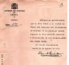 - 1 2 3 Garcia, Juan (10 March 2017). "Antonia Pérez Padín: Memoria de una luchadora contra el franquismo". El Faro de Ceuta (in European Spanish). Retrieved 16 February 2019.