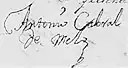 Antonio Cabral de Melo (1646-c.1717) was a Spanish landowner and Captain of provincial militias.[2] He dedicated himself to the raising of cattle and agriculture, later obtaining the position of Accionero (Vaquería (caza)) of the Río de la Plata, with permission for the slaughter of the cattle cimarron.[3]