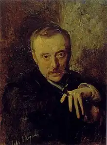 In 1871 two of his works, exhibited at the Neapolitan salon, were purchased by two foreign clients, both painters: Per un fiore (For a Flower) by the Canadian-born American painter François B. De Blois and L'ultima medicina (The Last Medicine!) by the French Felix de Lapommeraye.[1] When in Paris in 1877-78, Mancini met the Impressionist painters Edgar Degas and Édouard Manet. He became friends with John Singer Sargent, who famously pronounced him to be the greatest living painter. His mature works show a brightened palette with a striking impasto technique on canvas and a bold command of pastels on paper.