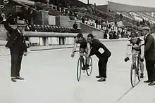 Antoine Mazairac (left) at the 1928 Olympic Games in Amsterdam in the sprint semi-final against the Danes Willy Falck Hansen.