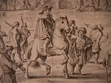 Antonius de Liedekerke left Texel on 1 September 1640 and arrived in Salé three months later.[3] After a few days the Gelderland left for Asfi. Liedekercke liked the weather around Christmas and the local bread. The daughter of Murat Rais, who had been travelling with him, met with her father. The figurehead of the saint was removed. Then they sailed to Mogador. In March he visited the king in Marrakesh. Liedekercke was accompanied by the engraver Adriaen Matham. Matham left numerous drawings of fishes and sharks, including an engraving of the El Badi Palace, which they visited in March, and before it was destroyed.[4] In July they left Safia with 45 Dutchmen, who had been in prison for two years; the cost of 28 more sailors was too high and left in Maroc.